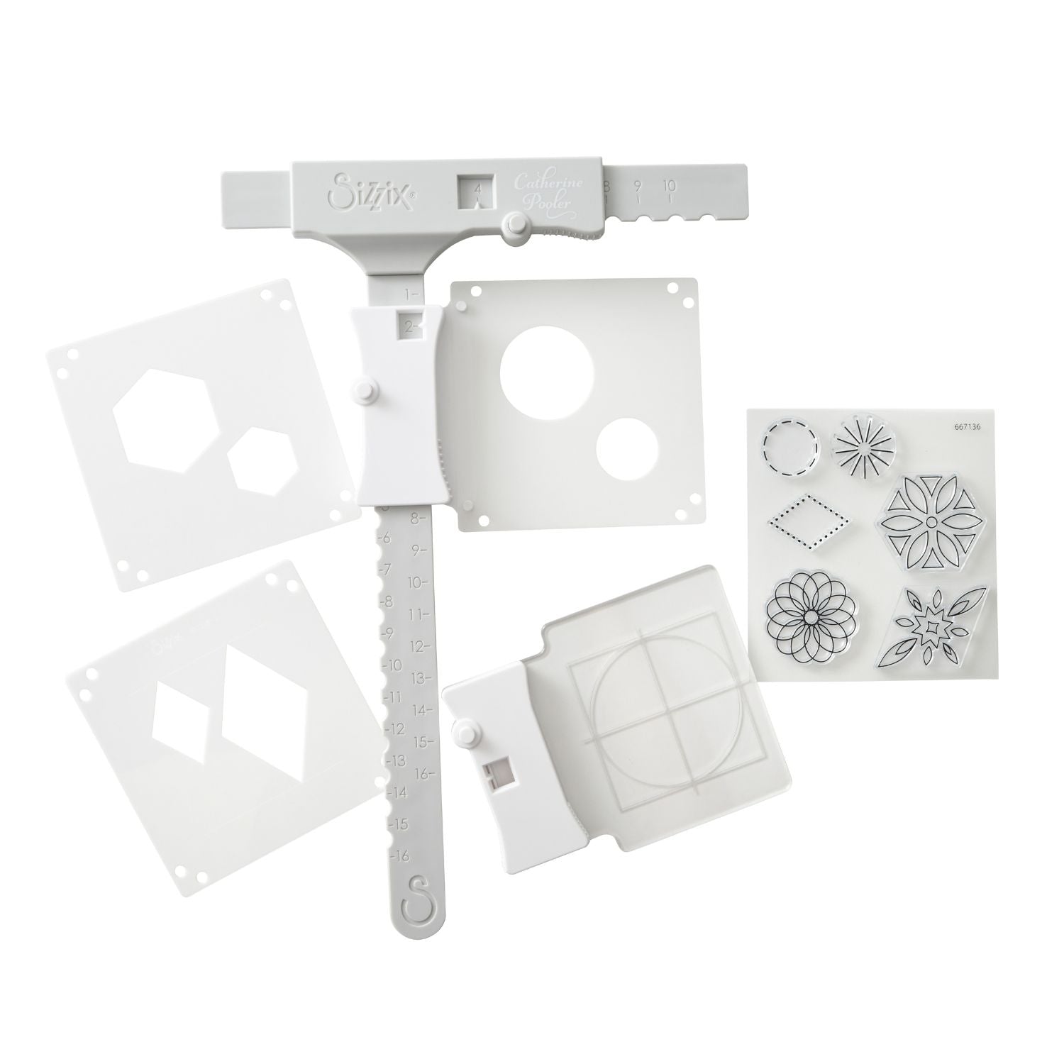 The Sizzix Stencil & Stamp Tool Accessory - Print & Pattern Tool, created with Catherine Pooler Designs, makes pattern play simple and fun! This dual tool makes creating repeat patterns with stencils and stamps easier than ever. Simply place the hinged arm onto the Sizzix Stencil & Stamp Tool (sold separately) and move both horizontally and vertically to design seamless all-over prints in minutes. This tool ensures perfect alignment every time, so you can quickly build up backgrounds, borders, and repeating motifs without the guesswork. Pair the tool with Catherine Pooler's latest collection of layering stencils and stamps, designed especially to work seamlessly, and unlock endless creative possibilities. From bold geometric repeats to delicate all-over textures, the Print & Pattern Tool gives you the freedom to explore, experiment, and make your own unique patterned designs again and again.