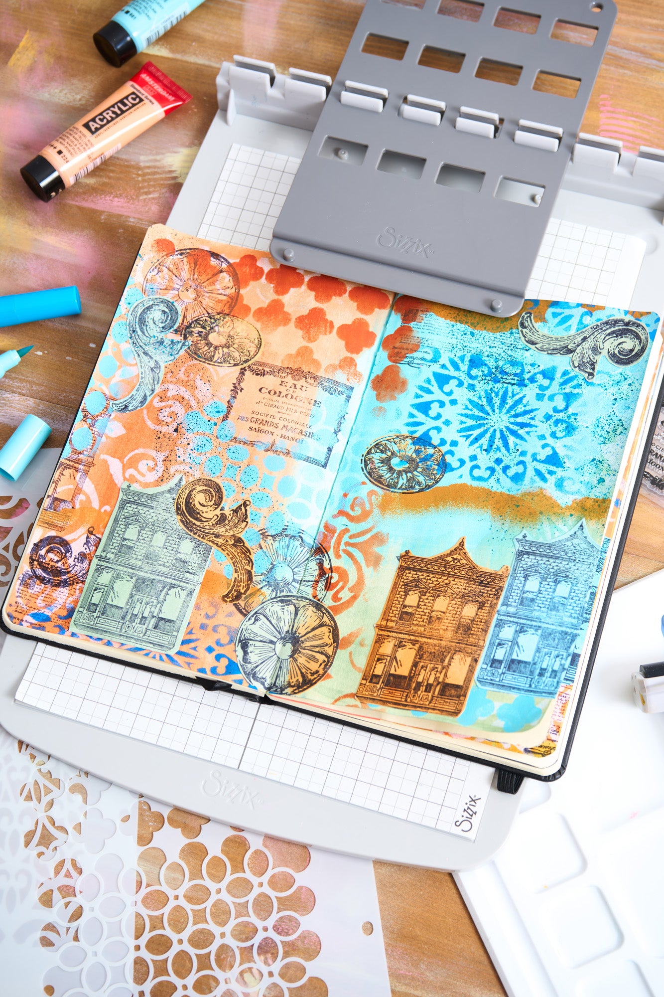 Sizzix Studio A5 Clear Stamps Set 7PK w/3pk A5 - Stencils Build It by Mark Montano