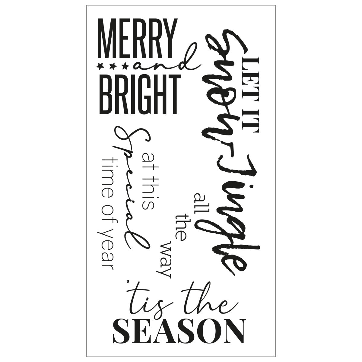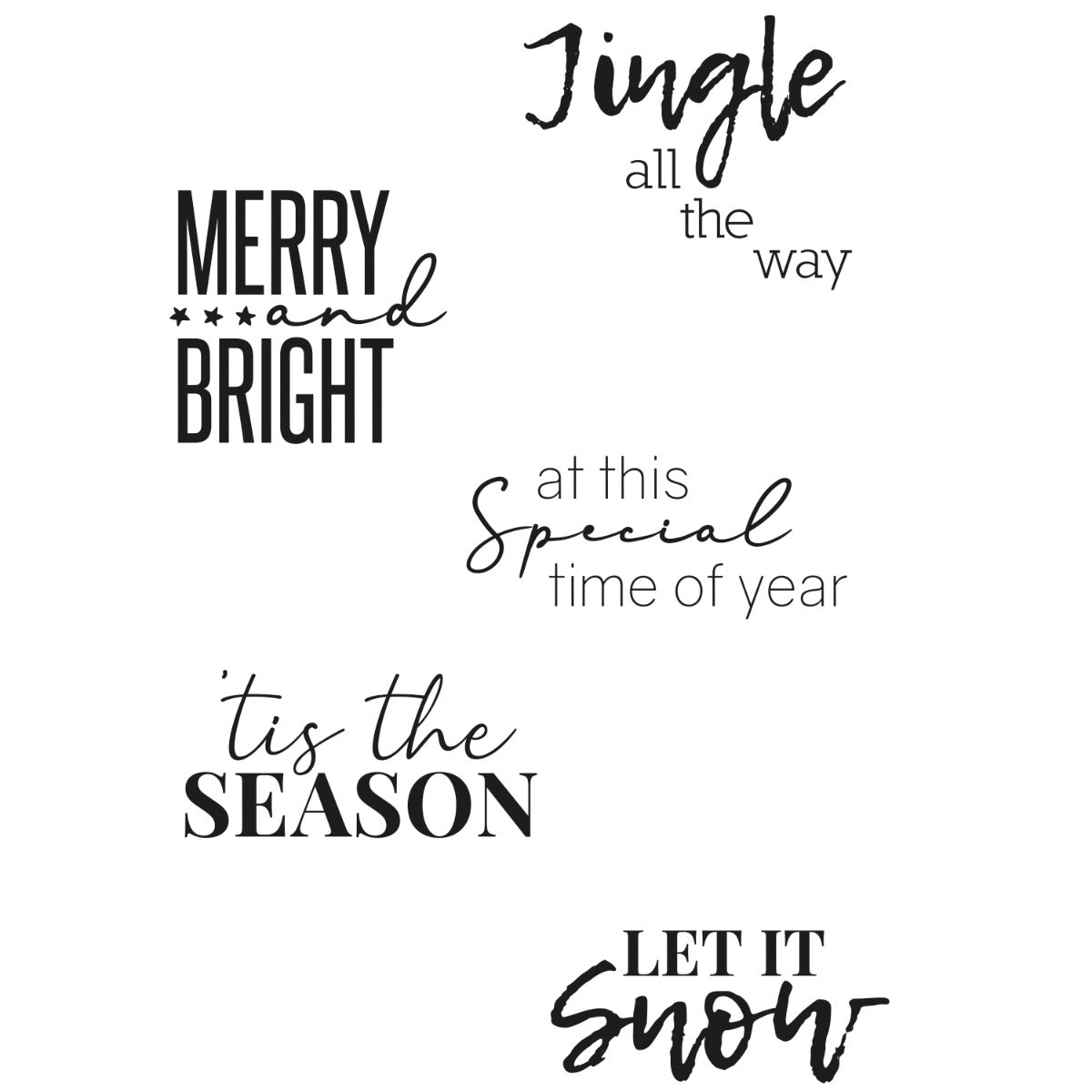 Get into the Christmas spirit with Sizzix Festive Sentiments #2 Clear Stamp Set! Perfect for holiday crafting, this set of five clear stamps features well-known Christmas phrases that are sure to bring joy to your craft projects this holiday season. These larger stamps are perfectly designed to work with the Sizzix Stencil & Stamp Tool (664896) that will give you a perfect registration in all your Christmas craft projects. This Stamp Set is perfect for creating festive card makes from scrapbooking to home decor and even handmade gift wraps!